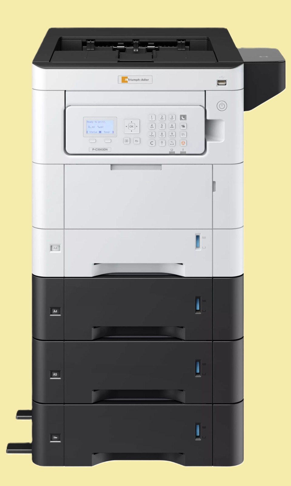 P-C3563DN er en farvelaserprinter i A4-format, der passer godt til kontorer, som ønsker farveudskrifter uden at skulle investere i en stor multifunktionsmaskine. Den printer omkring 35 sider i minuttet og håndterer både farve og sort/hvid hurtigt og stabilt.