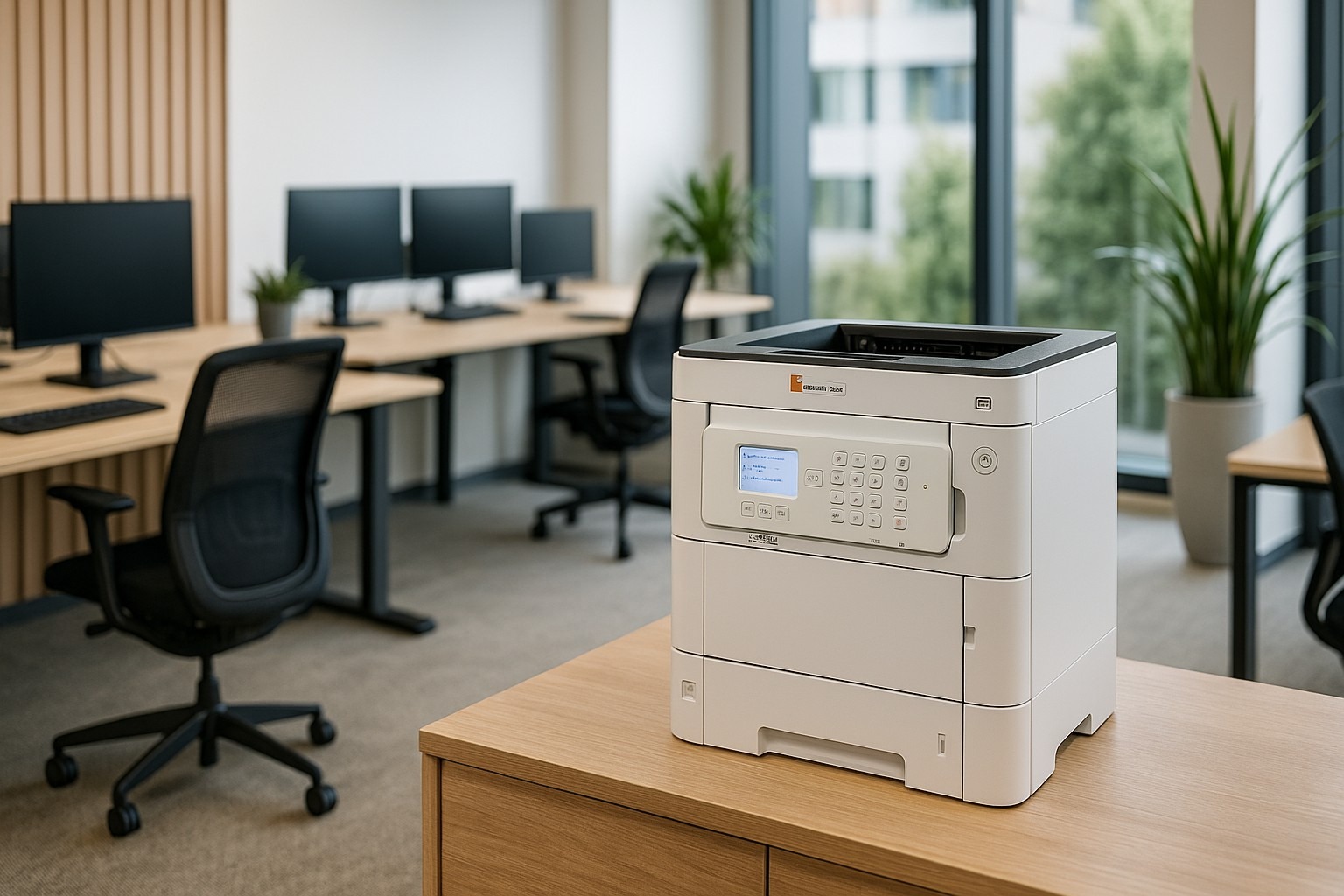 For arbejdspladsen betyder det, at man får en pålidelig farveprinter, der kan klare dagligdags opgaver, præsentationer, rapporter og andet materiale i en god kvalitet – uden at maskinen bliver dominerende i rummet.
