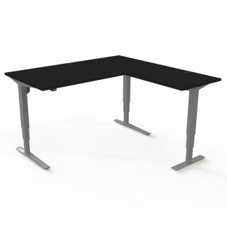 Beskrivelse af Hæve-/sænkebord | 160x160 cm | Sort med sølv stel