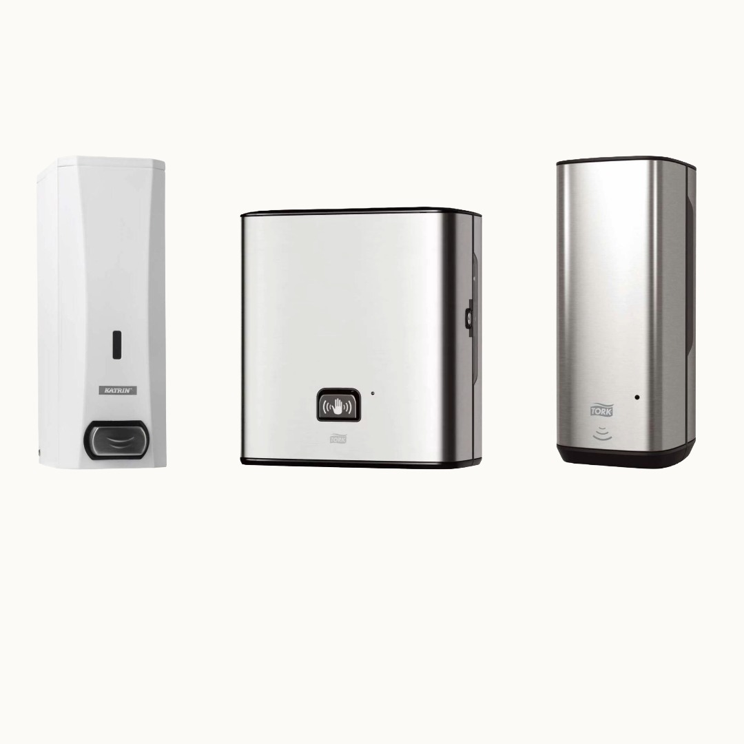 - Sæbe dispenser – En håndfri sæbe dispenser udleverer sæbe automatisk via sensor, så brugerne undgår kontakt med overfladen. Den sikrer høj hygiejne og er ideel i områder med mange daglige brugere.