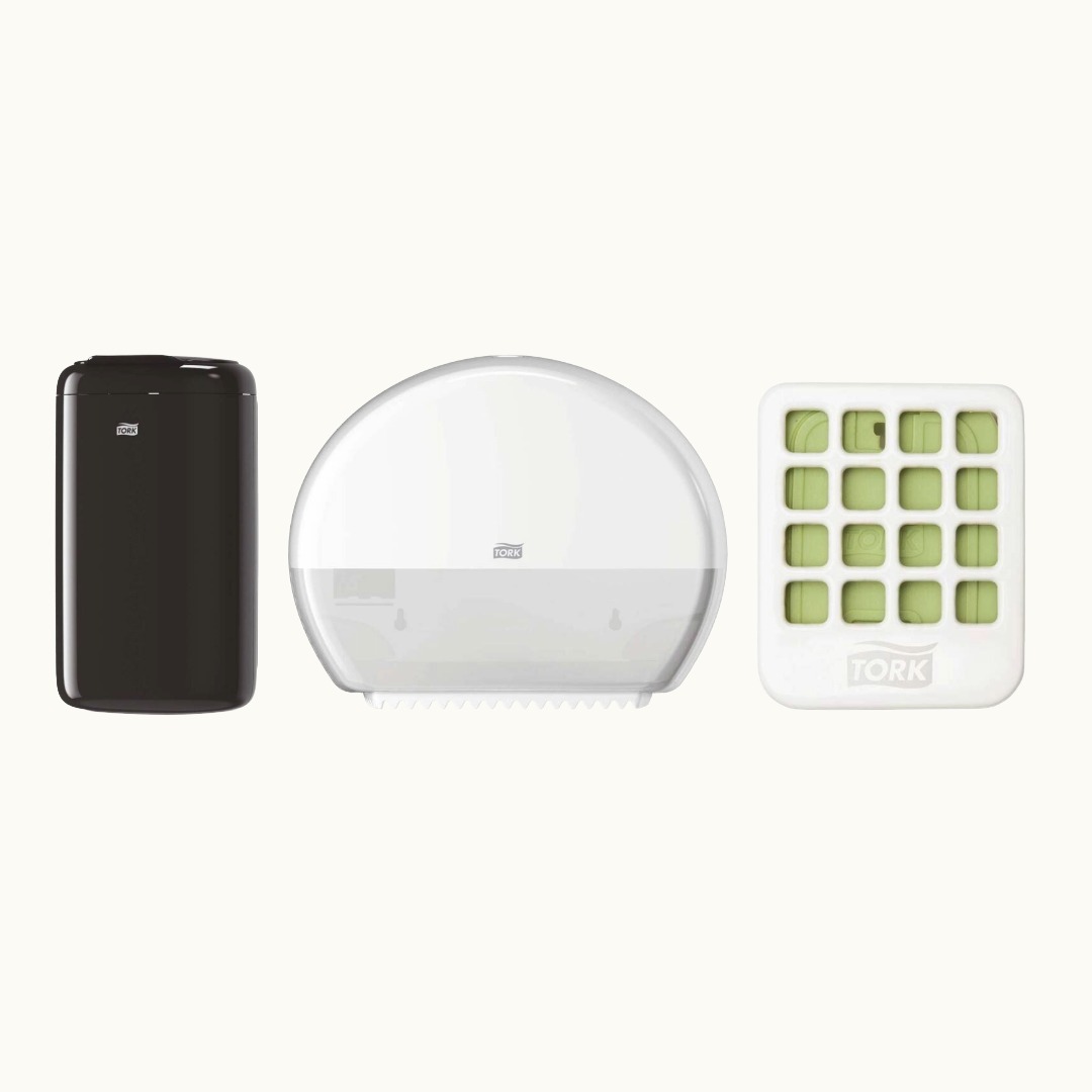- Luftfrisker dispenser – En luftfrisker dispenser sikrer en jævn og kontrolleret duft i toiletrum og fællesområder, så omgivelserne altid fremstår friske og indbydende. Den skaber en mere behagelig atmosfære for medarbejdere og gæster og bidrager til et godt helhedsindtryk af arbejdspladsen.