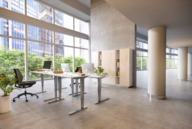 Hæve sænkeborde giver jer friheden til at indrette en arbejdsplads, der tilpasser sig arbejdsdagen – ikke omvendt. Med et stilrent udtryk og fleksibel funktion bliver det nemmere at skabe et moderne kontormiljø, hvor bevægelse og variation er en naturlig del af hverdagen. Resultatet er en mere dynamisk, præsentabel arbejdsplads, der både ser professionel ud og fungerer i praksis.