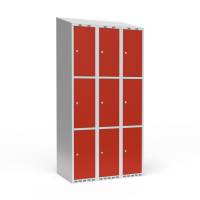 Garderobeskab 3x300 mm Lige tag 5 rum i højden Rød dør Cylinderlås