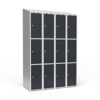 Garderobeskab 3x300 mm Skråt tag 4 rum i højden Antracit dør Greb for hængelås